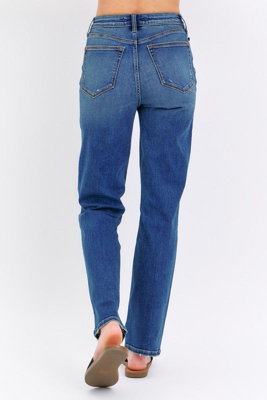 These Allison High Rise Straight Jeans by Judy Blue offer a sleek, modern silhouette with a comfortable, stretchy fit that maintains its shape throughout the day. Featuring a clean, undistressed wash, they provide a polished, versatile look suitable for any occasion. Designed to highlight the waist and elongate the legs, these jeans blend fashion with functionality for everyday wear.