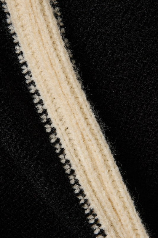 Edgy meets cozy in this sleek sweater dress that's ready for anything. The mock neck and rich black fabric create a sophisticated base, while cream trim adds a bold contrast that pops. Practical side pockets keep your essentials close, and the sleeveless cut makes layering effortless. Whether you're dressing it up for a night out or keeping it casual, this versatile piece strikes the perfect balance between comfort and attitude.
