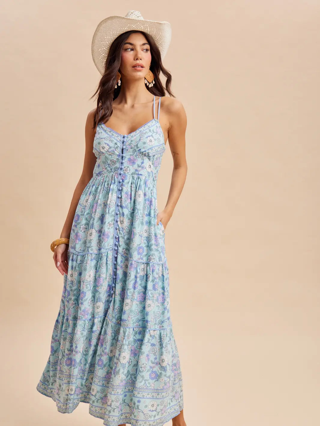 • Load image into Gallery viewer, Blue Iris Floral Maxi Dress