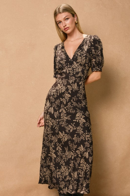 • Load image into Gallery viewer, Galaxy Floral Puff Sleeve Maxi Dress