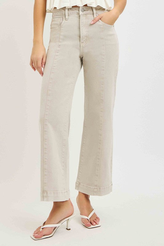 Elevate your denim game with these stunning sandstone high-rise wide-leg jeans! Featuring a flattering 11" rise and cropped 27½" inseam, they're designed to celebrate your curves with built-in tummy control that keeps you comfortable all day. The luxe almond hue pairs beautifully with the sharp front seam detail, while premium stretch fabric moves with you effortlessly. Perfect for spring styling—dress them up with heels or keep it casual with sneakers. These are the jeans you'll reach for again and again.